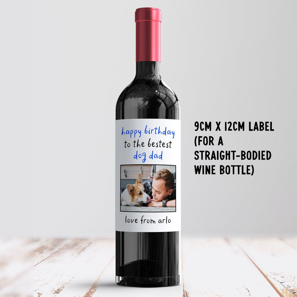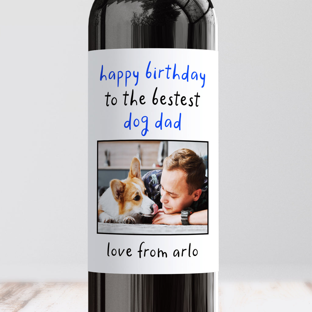 Show your pup's dad just how much they’re appreciated with this personalised birthday wine label - the perfect way to brighten their special day. The design features the sweet message “Happy Birthday To The Bestest Dog Dad”, alongside a space for your dog’s photo and their name. It turns any bottle of wine into a thoughtful and personal birthday gift from their four-legged friend.