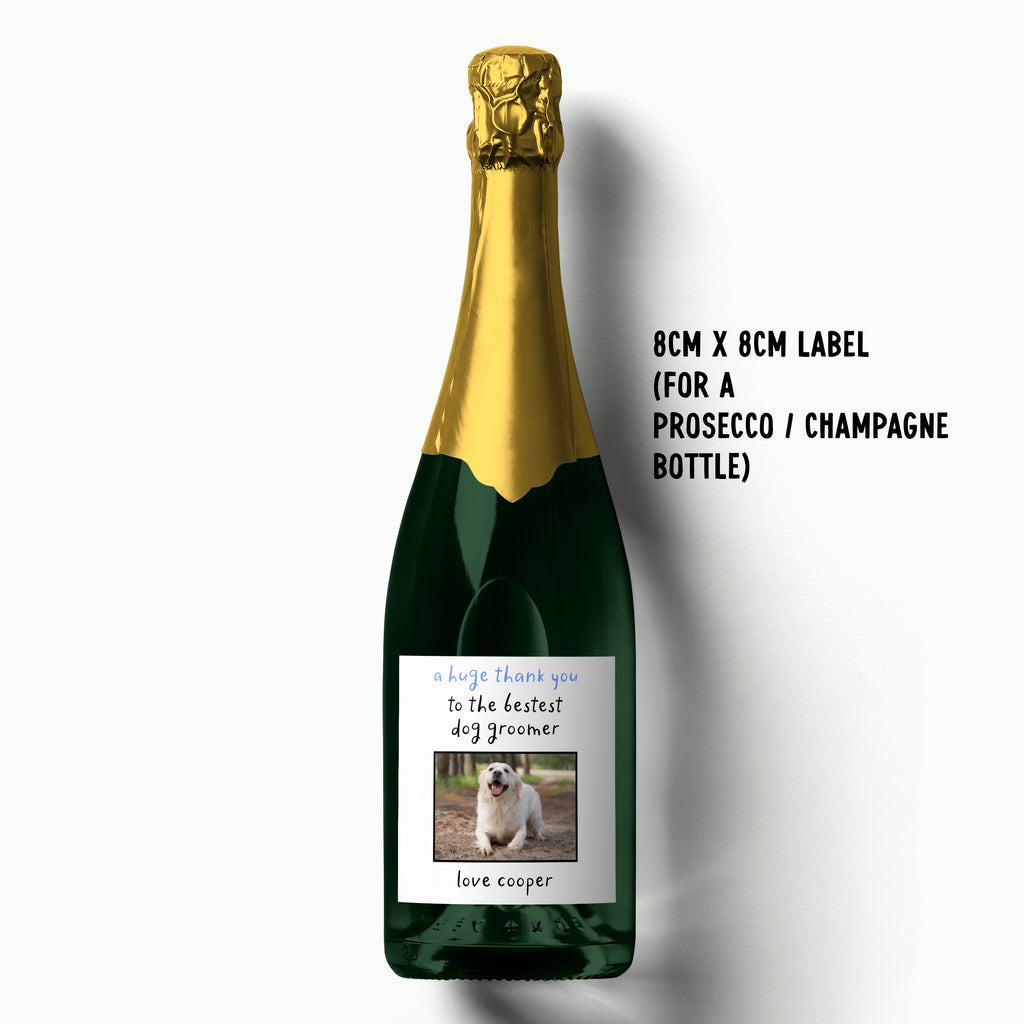 Show your dog groomer just how much they’re appreciated with this personalised thank you wine label, a lovely way to say thanks for taking such great care of your pup. The design features the sweet message Thank You To The Bestest Dog Groomer, alongside a space for your dog’s photo and their name. It turns any bottle of wine into a thoughtful and personal birthday gift from their four-legged friend.